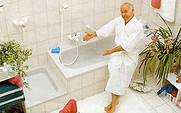 Aus alt wird neu! Ein elegantes und modernes Bad ohne Stress und Schmutz! ![]() Der spezielle FCKW-freie PU-Schaum sorgt für einen festen und dauerhaften Sitz Ihrer neuen Bad- oder Duschwanne aus hochwertigem Sanitär-Acryl. Auch Ihr alter Duschvorhang kann durch eine neue Duschabtrennung ersetzt werden und das renovierte Bad wird so zur Visitenkarte Ihrer Wohnung - preiswert, schnell und sauber. Komfort schon beim Einbau - ohne Schmutz und ohne Fliesenschaden! Sorgfältig wird Ihre alte Badewanne oder Duschwanne vermessen. Anschließend wird nach diesen Maßen und Ihrem Farbwunsch die passende Wanne ermittelt. Wie einfach der Einbau vor sich geht, entnehmen Sie unserem Montage-Beispiel. ![]() Der Wanne-in-Wanne-Einbau ist auch eine gute Gelegenheit, veraltete Armaturen und deie sonstige Ausstattung Ihres Badezimmers vom Fachmann auf den neuesten Stand bringen zu lassen! ![]() Das bewährte Wanne-in-Wanne-System kann unter bestimmten Voraussetzungen auch mit Massagebad-Komfort ausgestattet werden Eine prickelnde Wohltat nach Anstrengung und Stress. Wir beraten Sie gerne! |